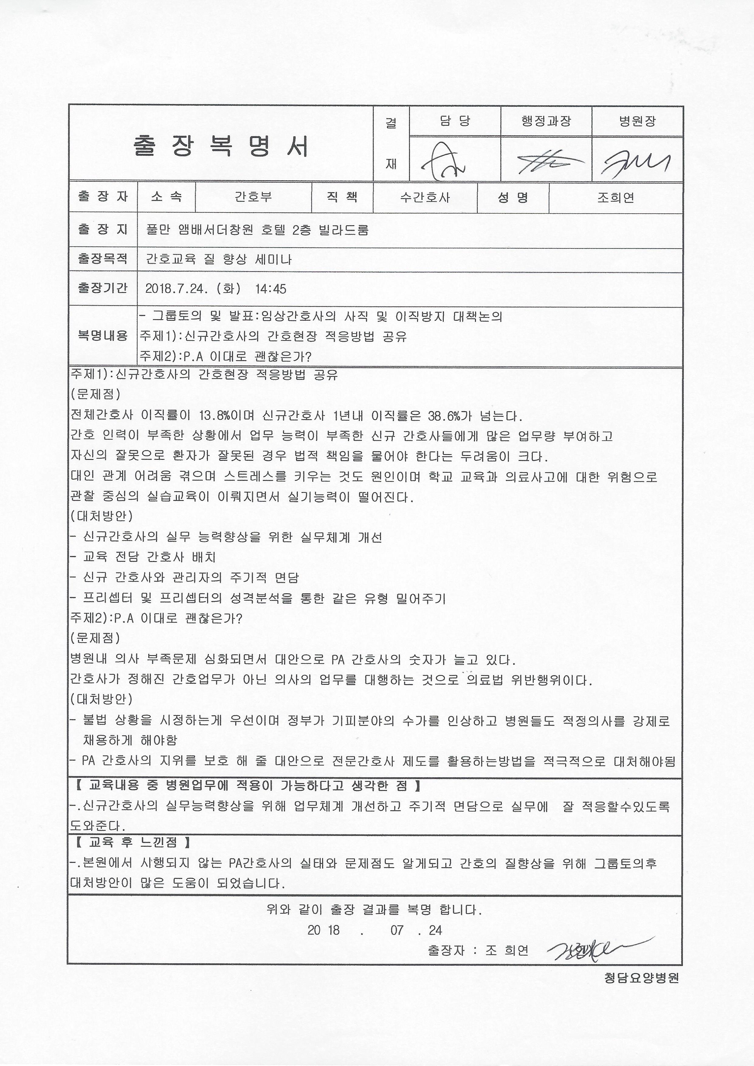 -. ±³À°ÀϽà : 2018. 7. 24(È) 14:45 -. ±³À°Àå¼Ò : Ç®¸¸È£ÅÚ 2Ãþ ºô¶óµå·ë -. Âü ¼® ÀÚ : ±èÇý¶õ_°£È£ºÎÀå, Á¶Èñ¿¬_2WHN, ½É¸íÈñ_3WHN