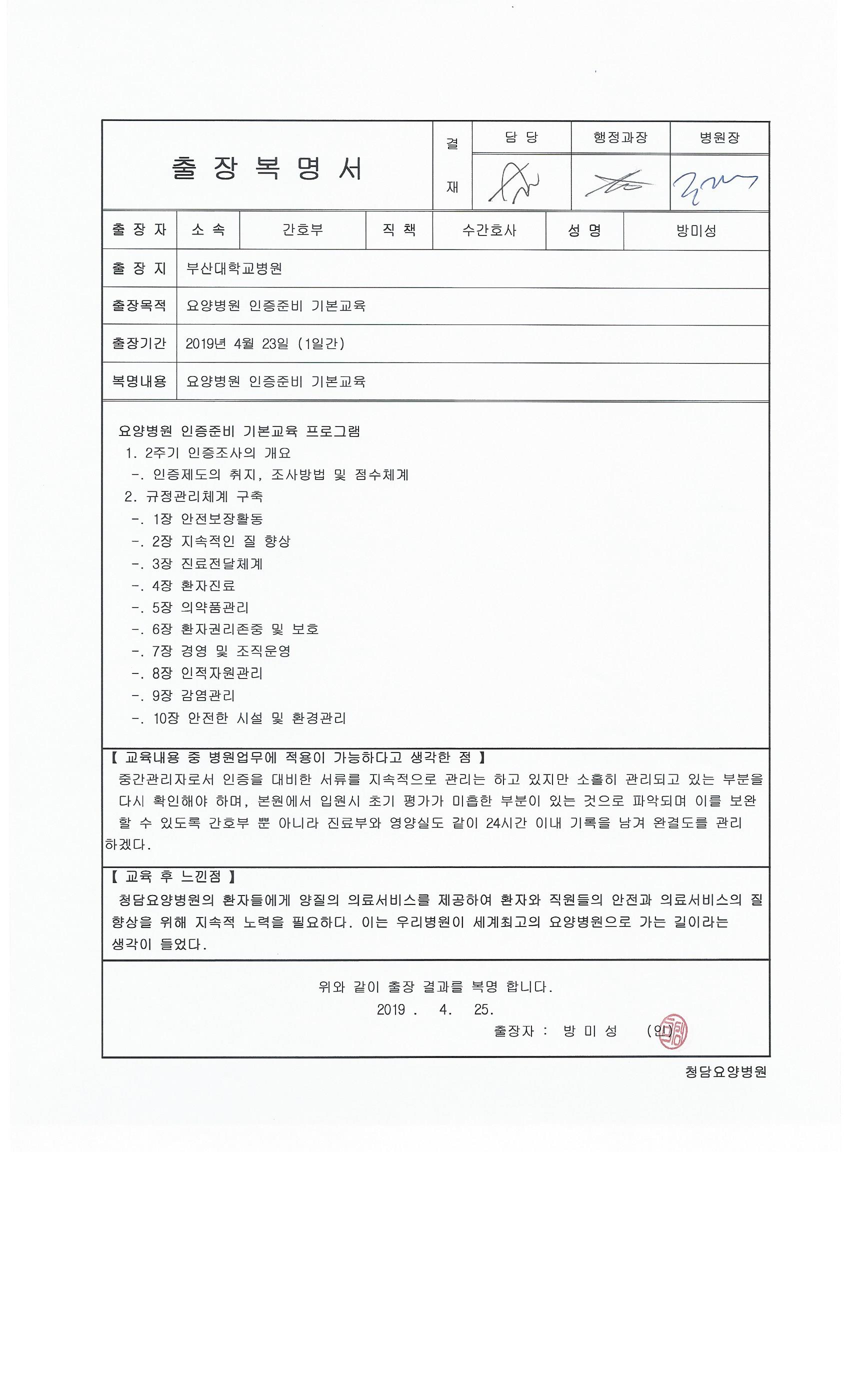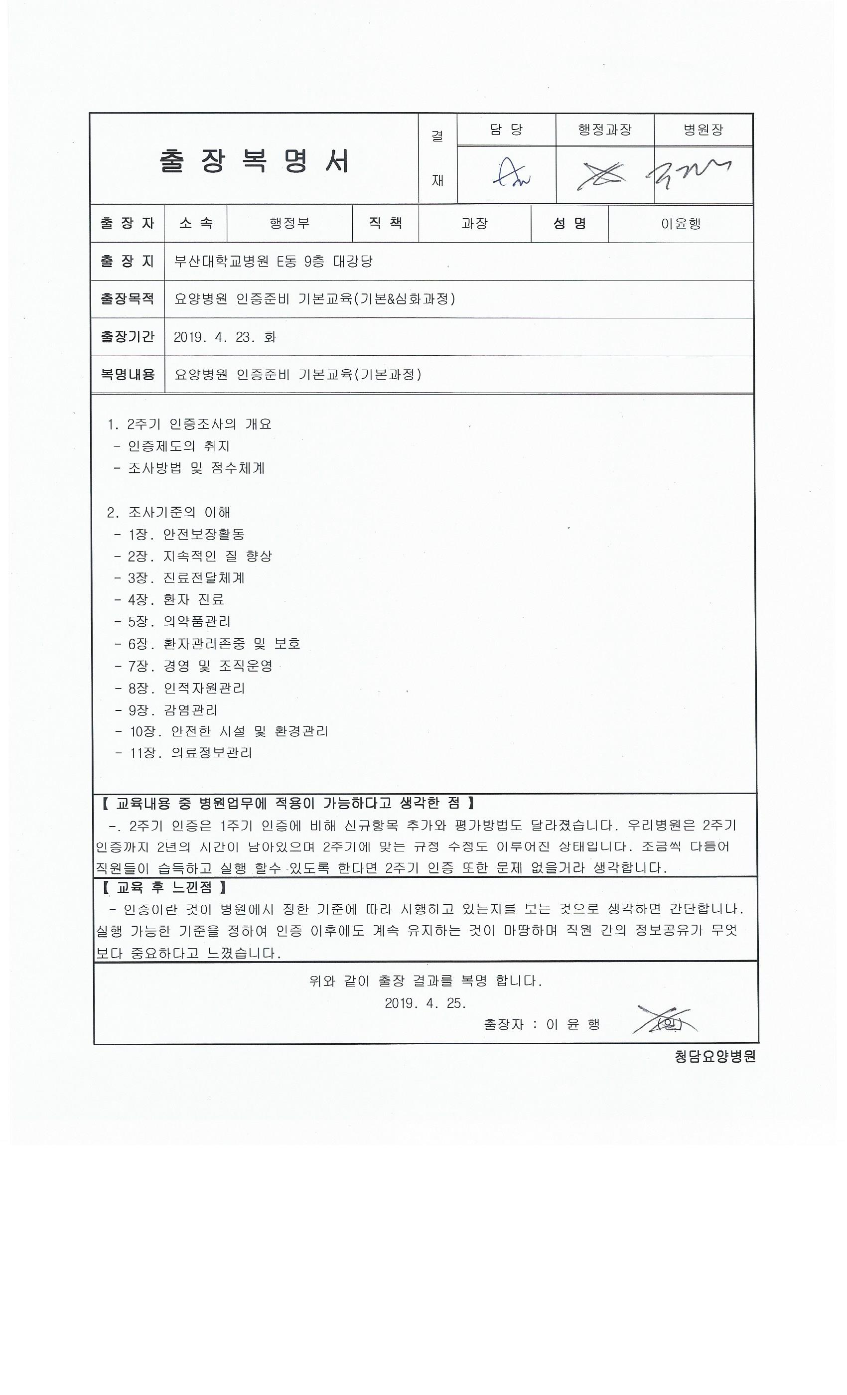 -. ±³À°ÀϽà : 2019. 04. 23(È) -. ±³À°Àå¼Ò : ºÎ»ê´ëÇб³º´¿ø Eµ¿ 9Ãþ ´ë°´ç -. Âü ¼® ÀÚ : ÀÌÀ±Çà(ÇàÁ¤°úÀå), ±èº¸¿µ(2WHN), ¹æ¹Ì¼º(4WHN)