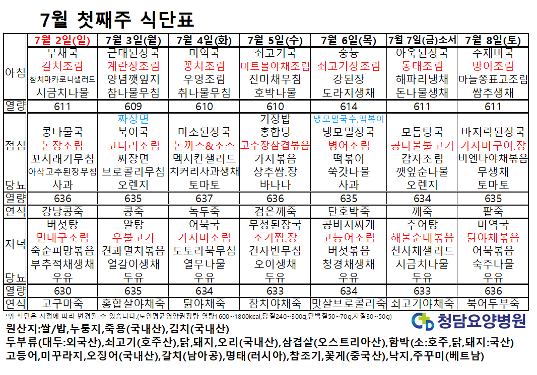 7¿ù ù°ÁÖ ½Ä´ÜÇ¥