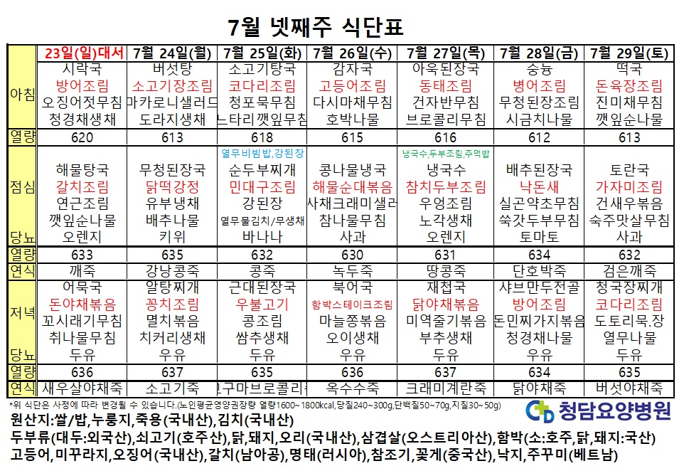 7¿ù ³Ý°ÁÖ ½Ä´ÜÇ¥