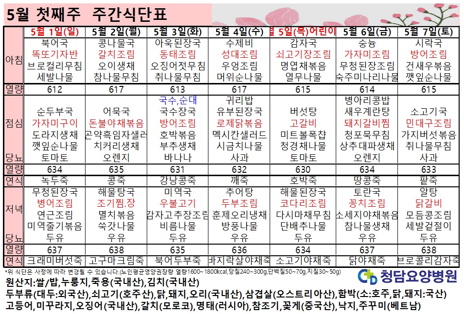 5¿ù ù°ÁÖ ½Ä´ÜÇ¥