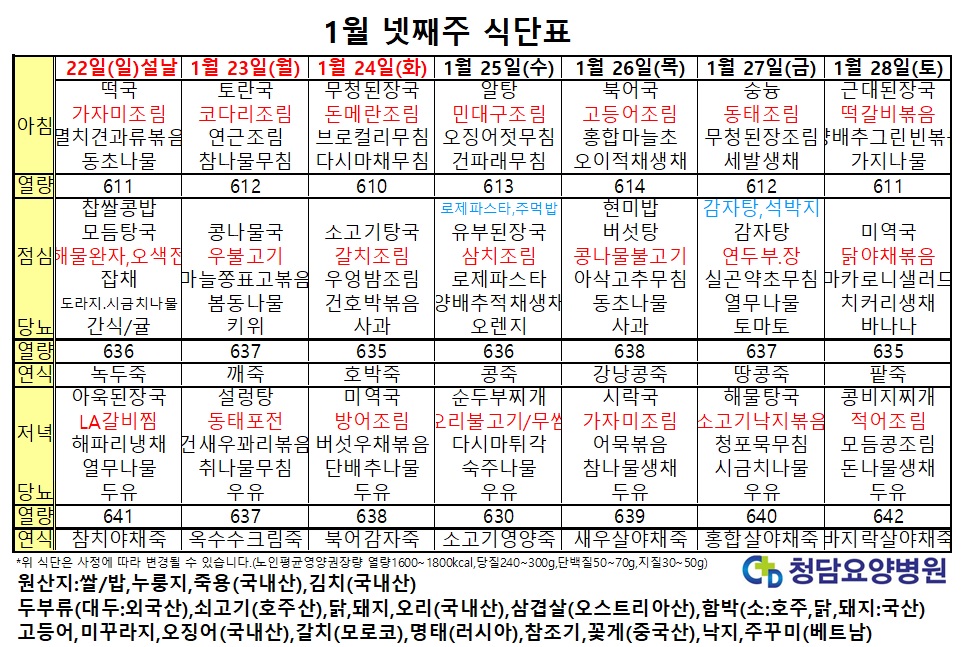 1¿ù³Ý°ÁÖ ½Ä´ÜÇ¥