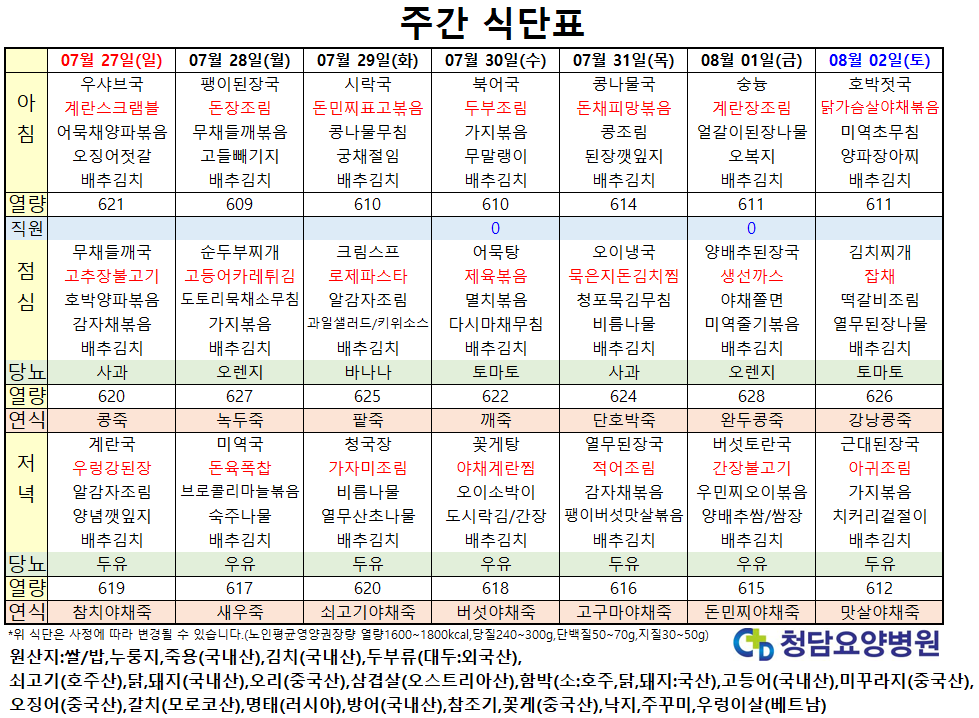 7¿ù ¸¶Áö¸·ÁÖ ½Ä´ÜÇ¥