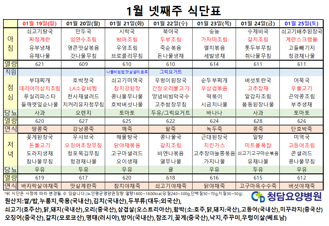 1¿ù ³Ý°ÁÖ ½Ä´ÜÇ¥