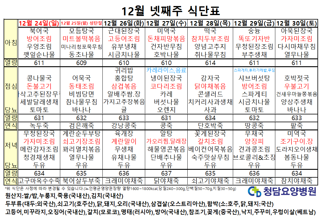 12¿ù ³Ý°ÁÖ ½Ä´ÜÇ¥