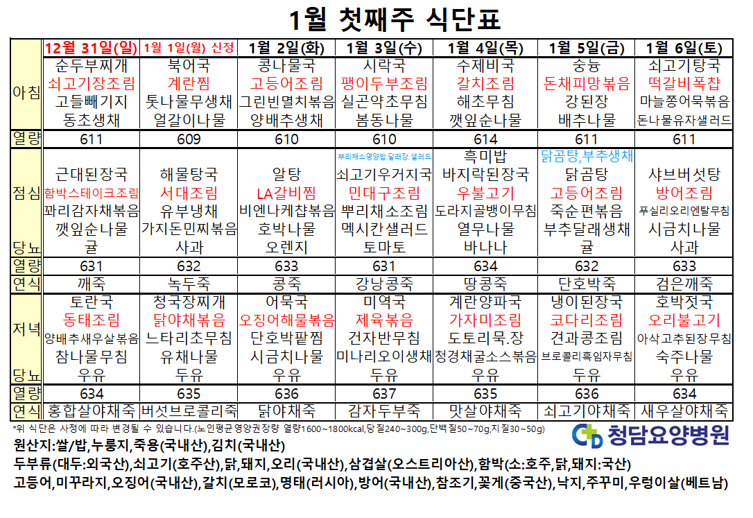 1¿ù ù°ÁÖ ½Ä´ÜÇ¥