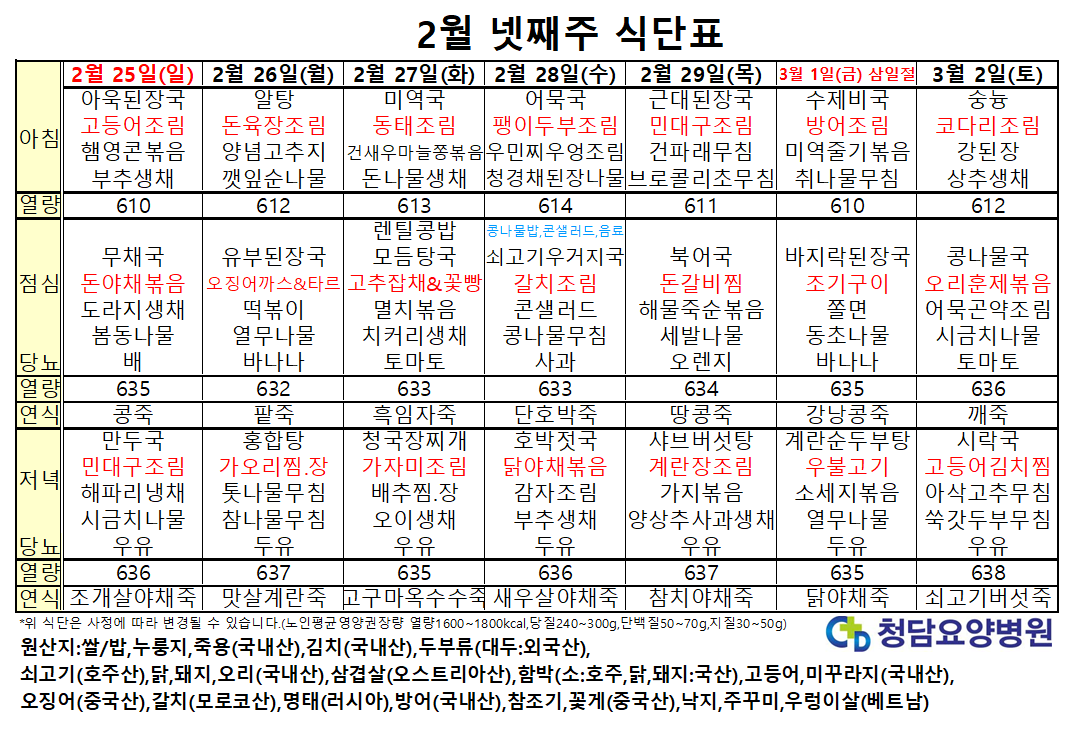 2¿ù ³Ý°ÁÖ ½Ä´ÜÇ¥
