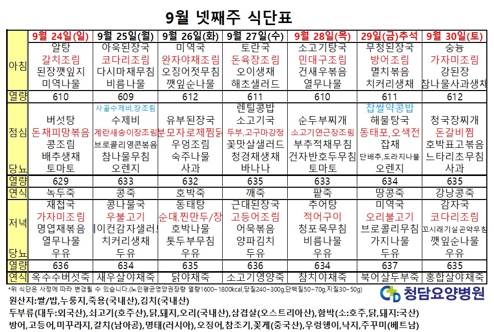 9¿ù ³Ý°ÁÖ ½Ä´ÜÇ¥