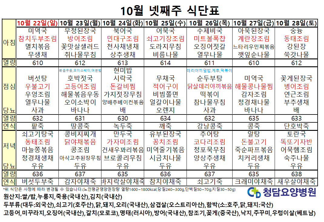 10¿ù ³Ý°ÁÖ ½Ä´ÜÇ¥