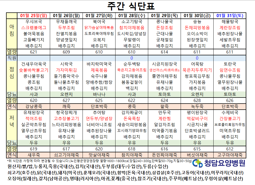 1¿ù ¸¶Áö¸·ÁÖ ½Ä´ÜÇ¥