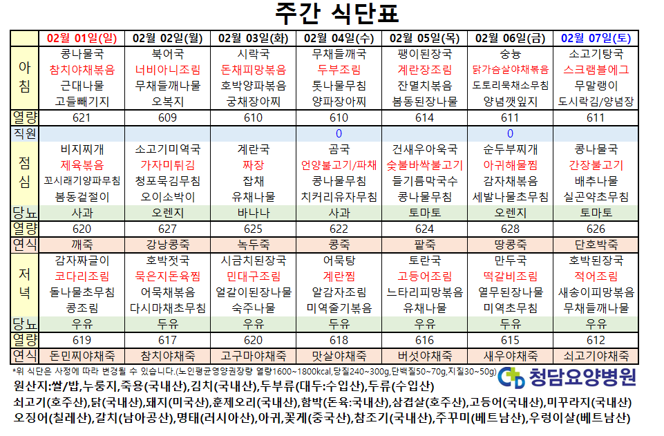 2¿ù ù°ÁÖ ½Ä´ÜÇ¥