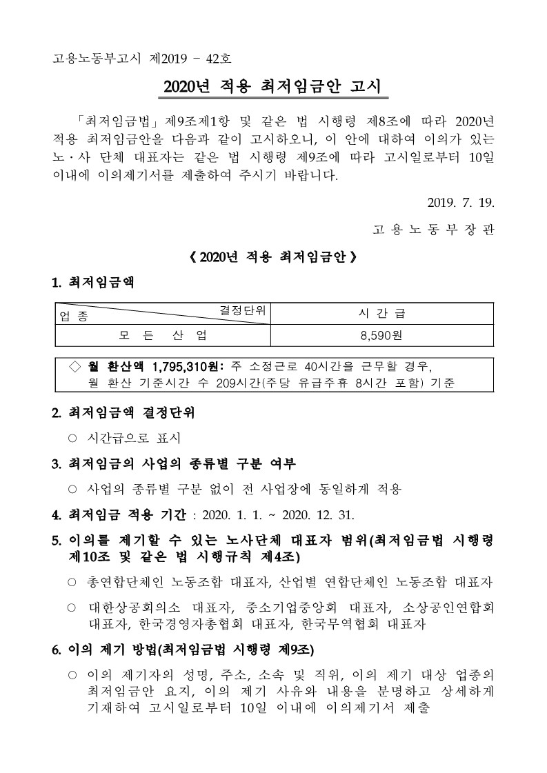 [°øÁö] 2020³â ÃÖÀúÀÓ±Ý °í½Ã