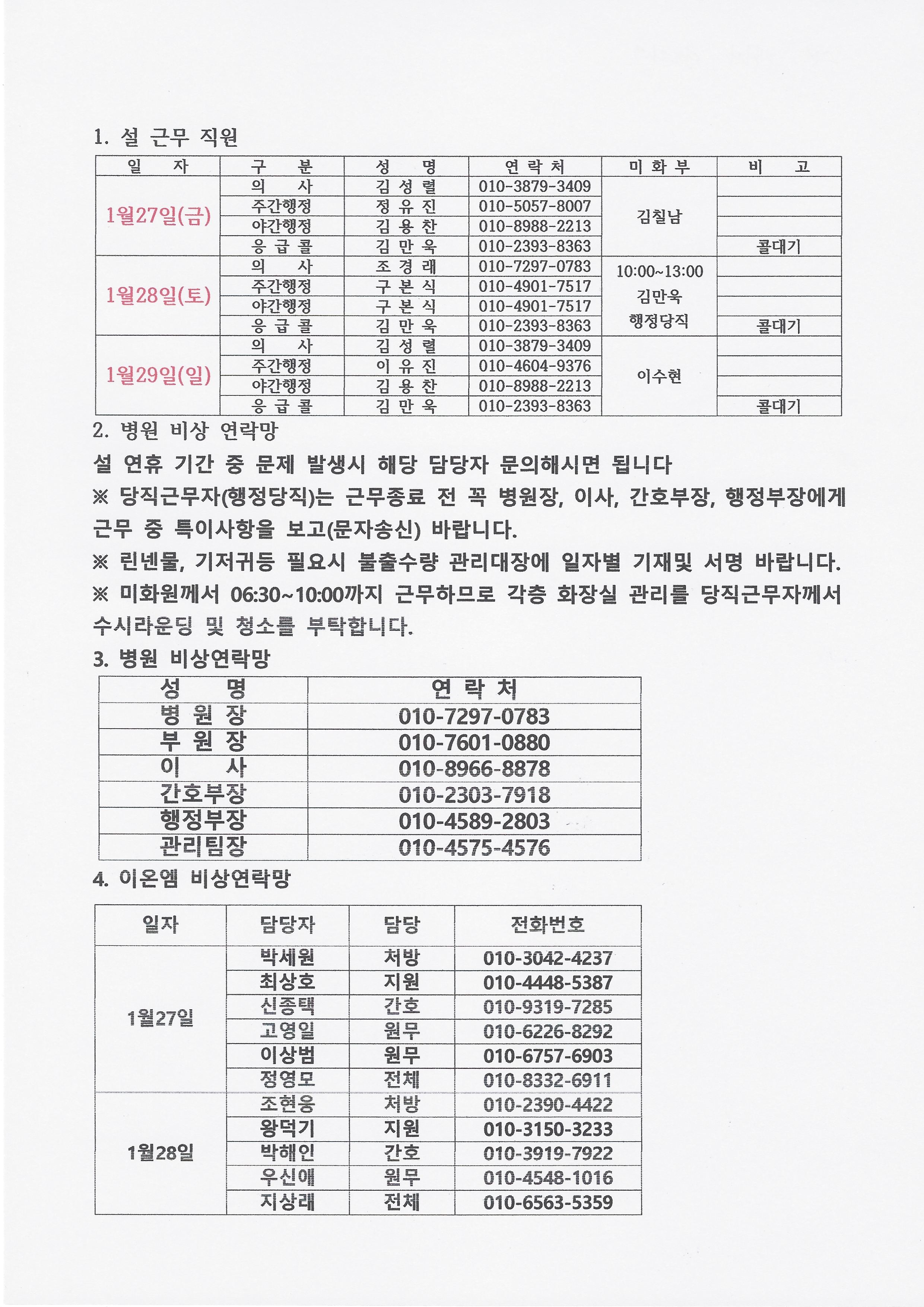 ¡Ø ¼³ ¿¬ÈÞ º´¿ø ¹× À̿¿¥ ºñ»ó¿¬¶ô¸Á