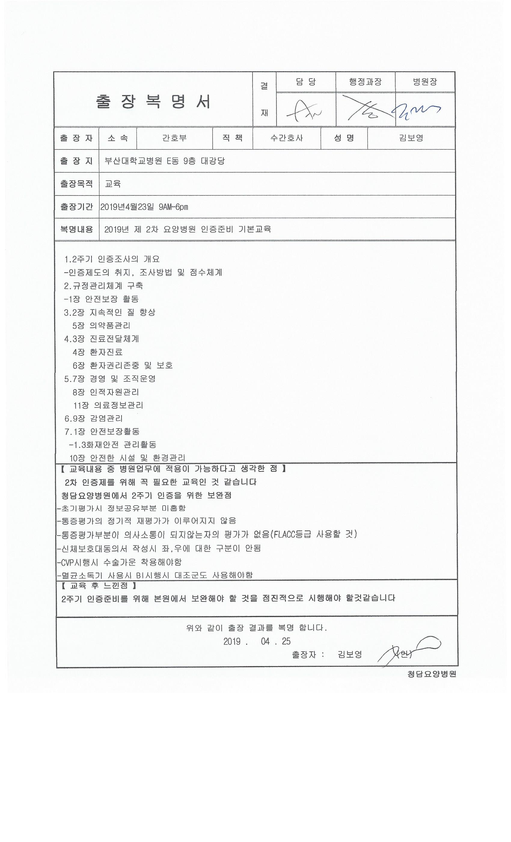 -. ±³À°ÀϽà : 2019. 04. 23(È) -. ±³À°Àå¼Ò : ºÎ»ê´ëÇб³º´¿ø Eµ¿ 9Ãþ ´ë°´ç -. Âü ¼® ÀÚ : ÀÌÀ±Çà(ÇàÁ¤°úÀå), ±èº¸¿µ(2WHN), ¹æ¹Ì¼º(4WHN)