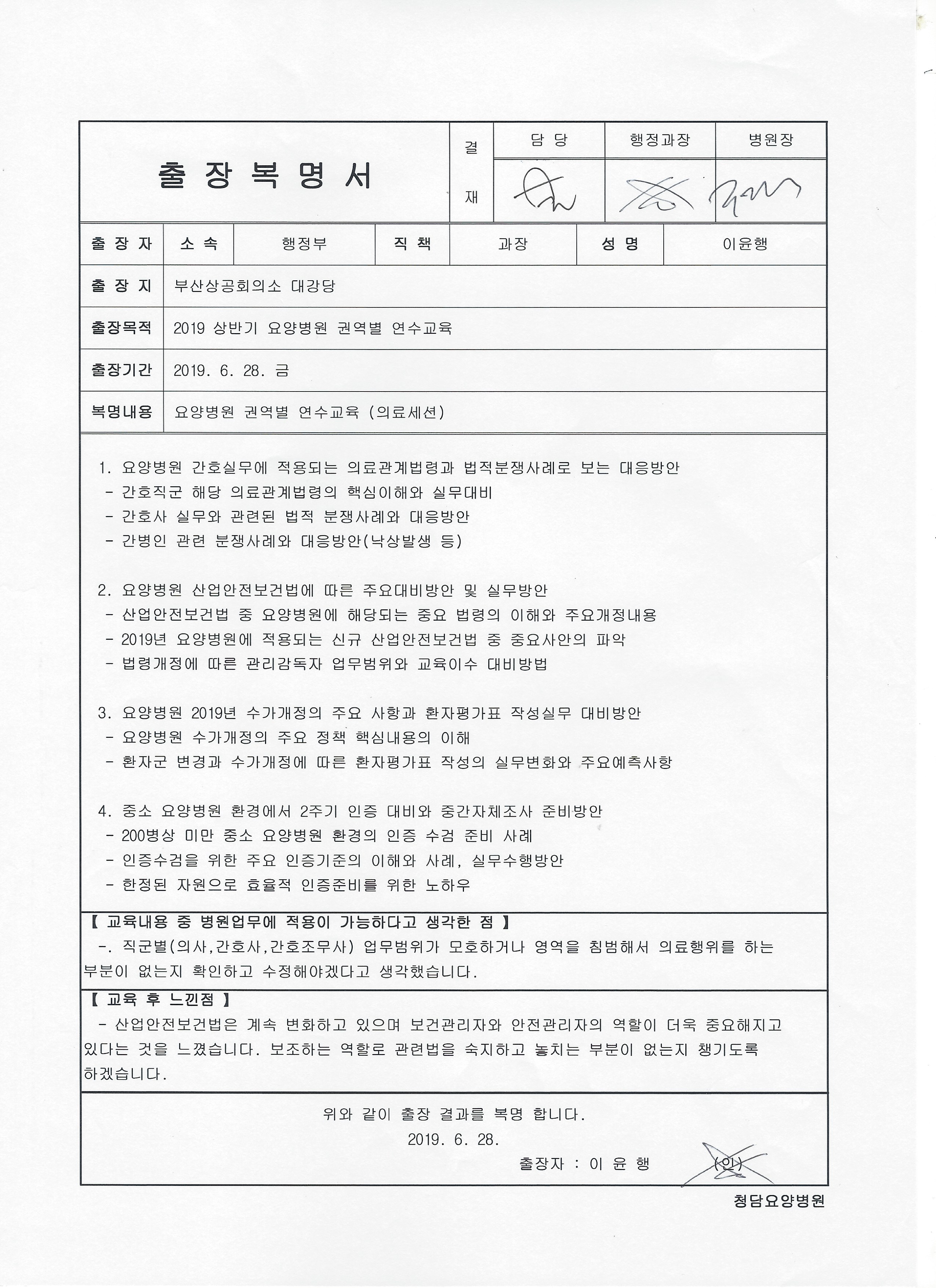 -. ±³À°ÀϽà : 2019.06.28(±Ý) -. ±³À°Àå¼Ò : ºÎ»ê»ó°øÈ¸ÀÇ¼Ò ´ë°´ç -. Âü ¼® ÀÚ : ÀÌÀ±Çà_ÇàÁ¤°úÀå, ÇÏÁö¿ø_½É»ç°úÀå, ÀüÇö½Ç_ÀÇ·á½ÇÀå