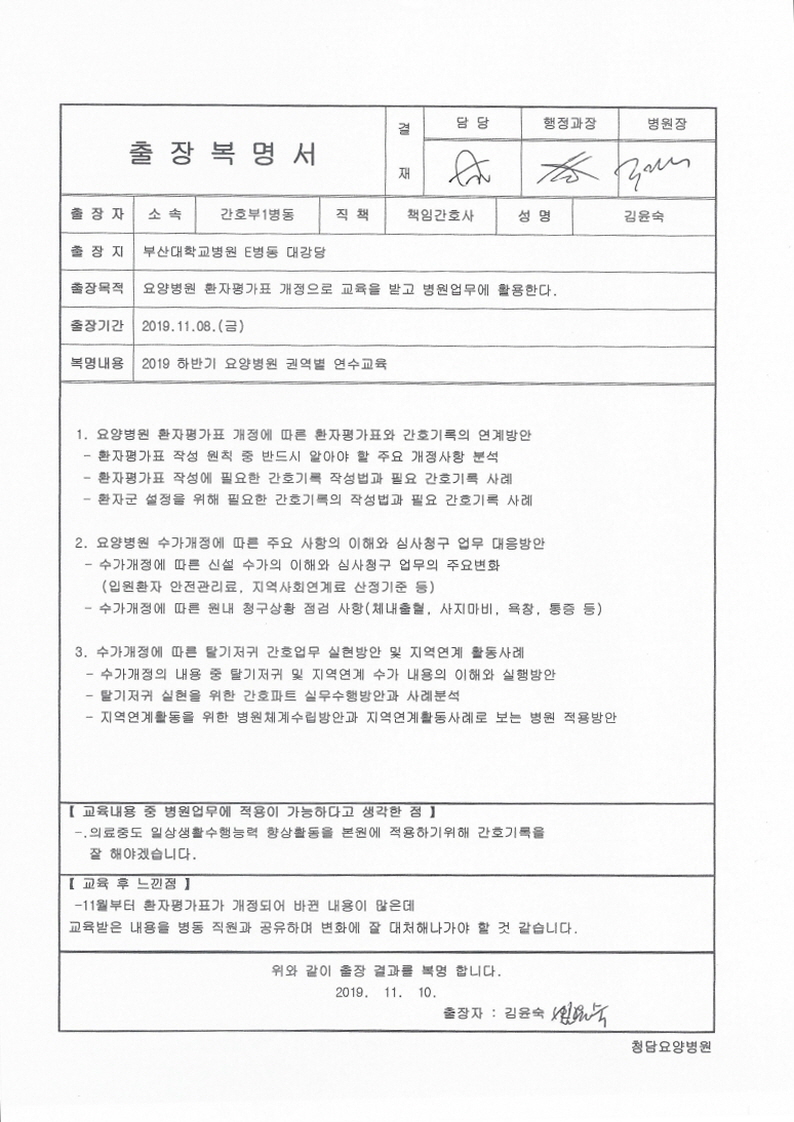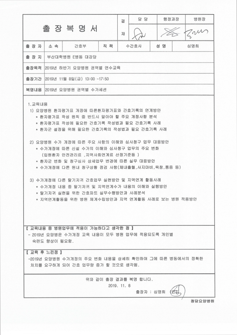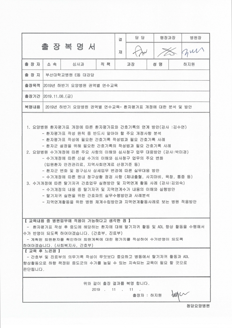 -. ±³À°ÀϽà : 2019. 11. 08(±Ý) -. ±³À°Àå¼Ò : ºÎ»ê´ëÇб³ Eµ¿ ´ë°´ç -. Âü ¼® ÀÚ : ÇÏÁö¿ø_½É»ç°úÀå, ½É¸íÈñ_3WHN, ±èÀ±¼÷_1WCN